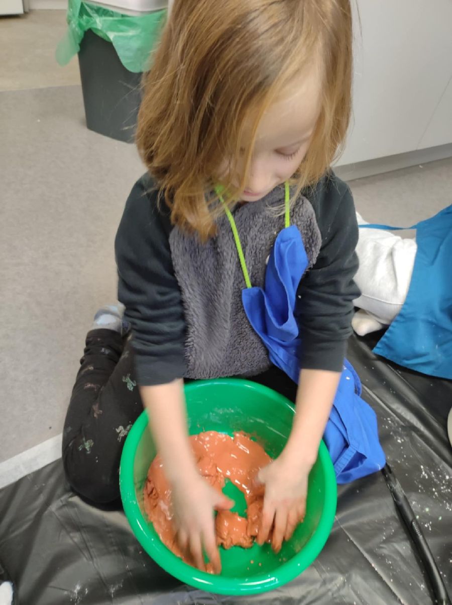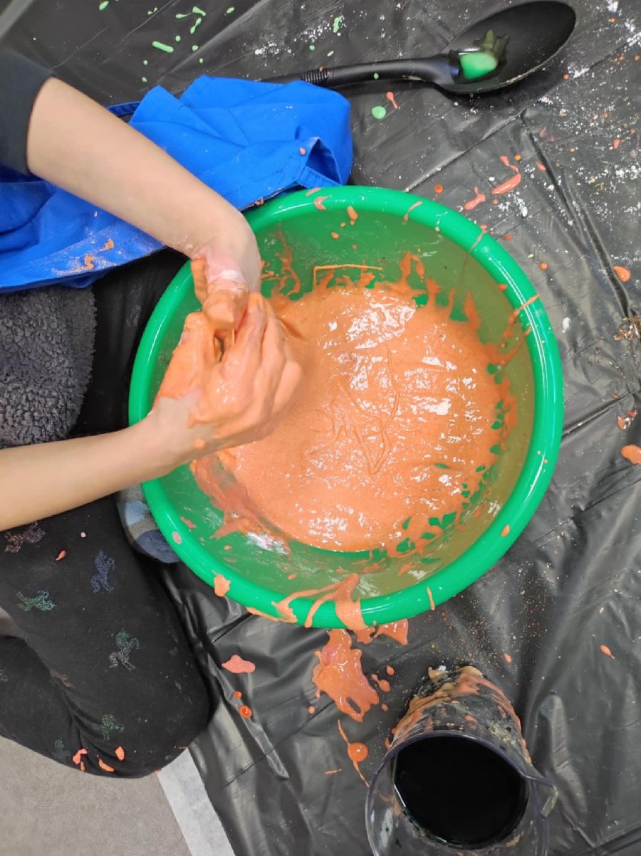 W Ognisku realizowane są zajęcia z Sensoplastyki®. Zajęcia mają na celu stymulowanie zmysłów oraz rozwijanie kreatywności dzieci poprzez zabawy z wykorzystaniem bezpiecznych, naturalnych produktów. Uczestnicy ćwiczyli motorykę małą, koncentrację oraz współpracę w grupie.